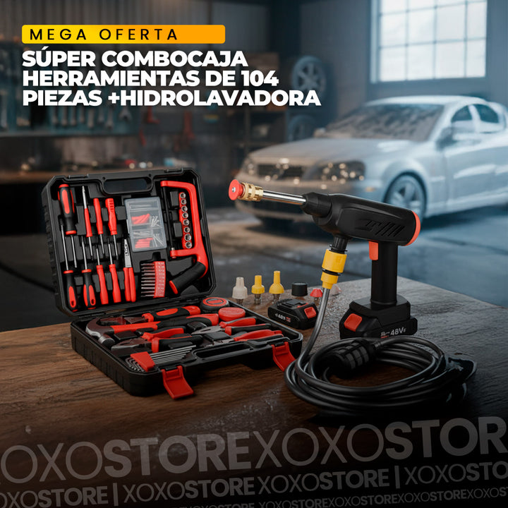 Super combo hidrolavadora mas caja de herramientas de 104 piezas